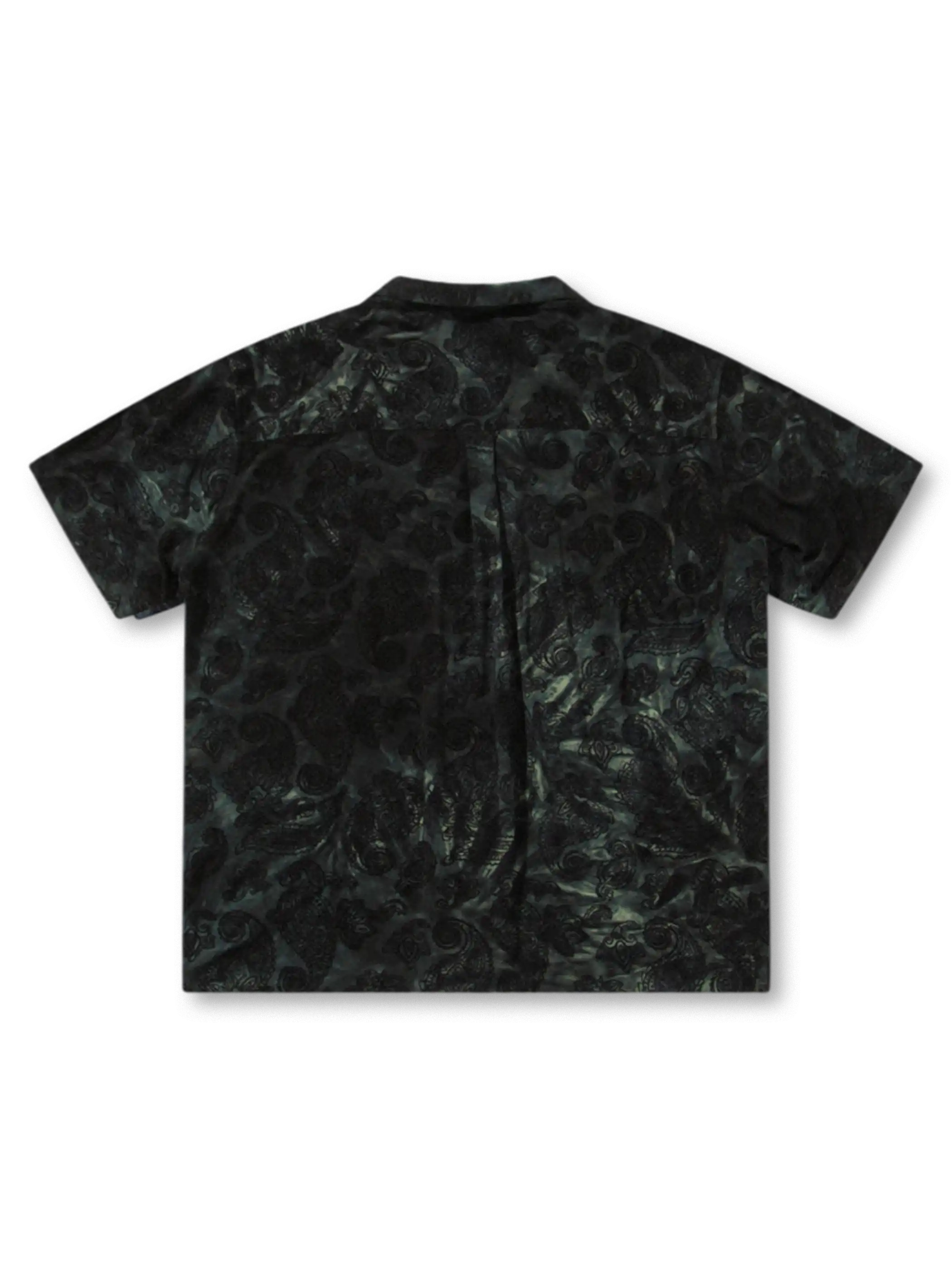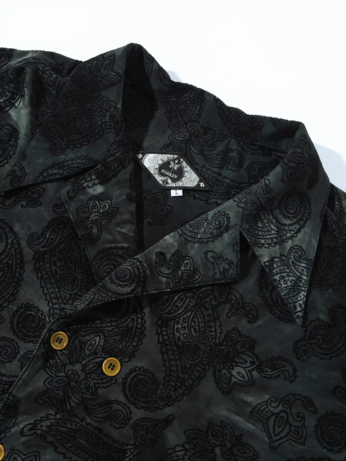 光沢感のあるジャカードとヴィンテージ調の柄が織りなす、リラックス感漂う古巴襟シャツ。