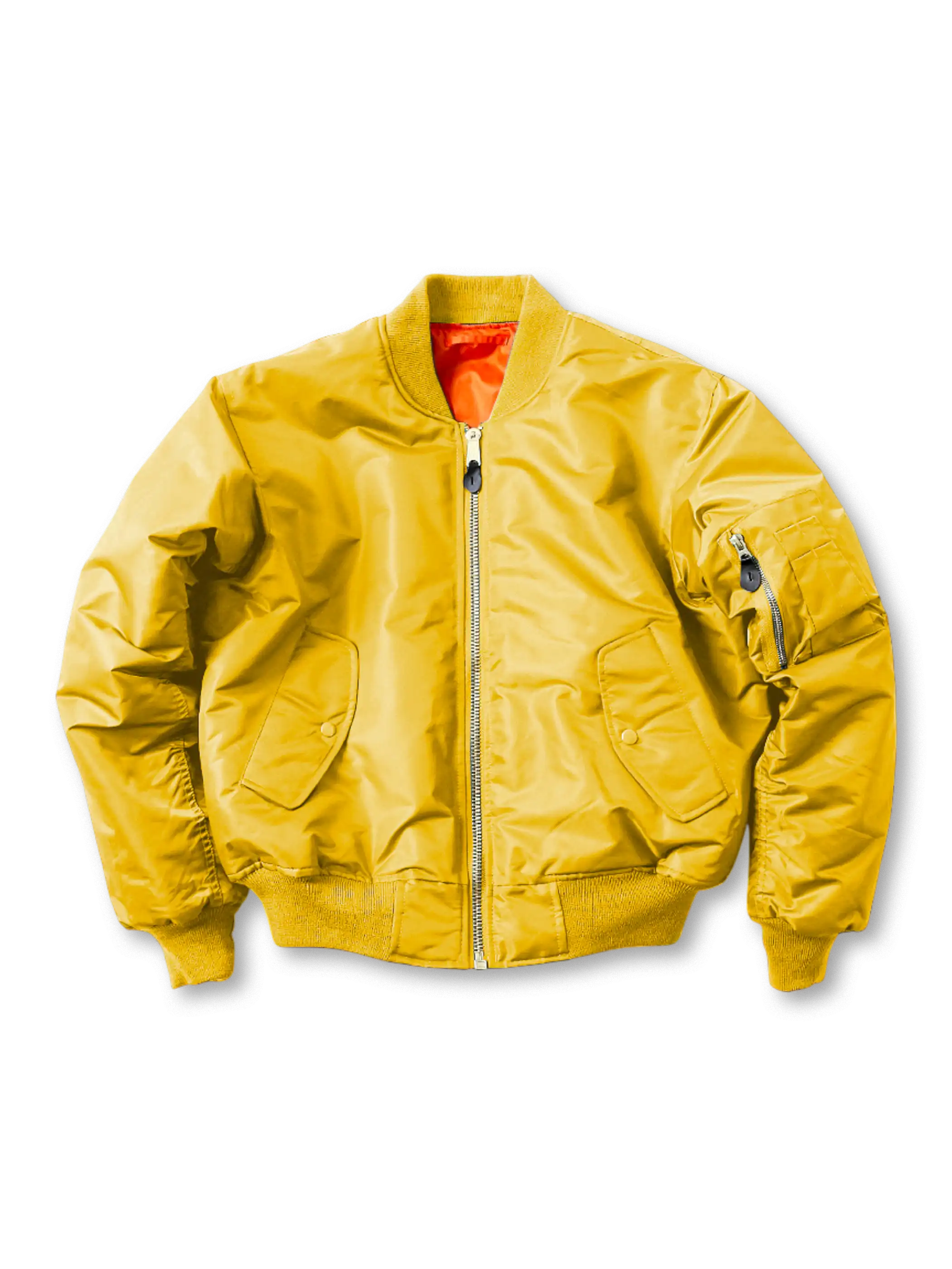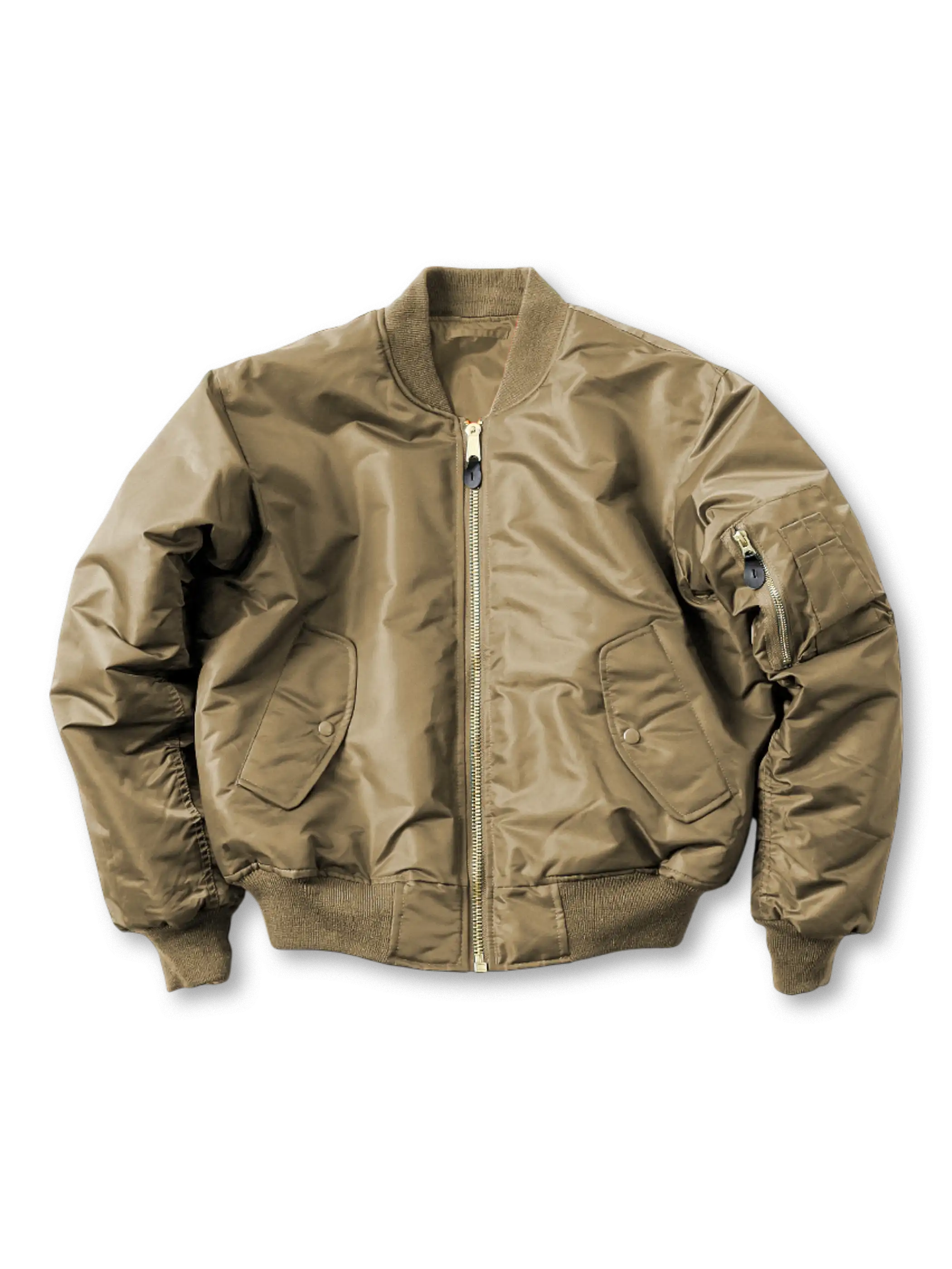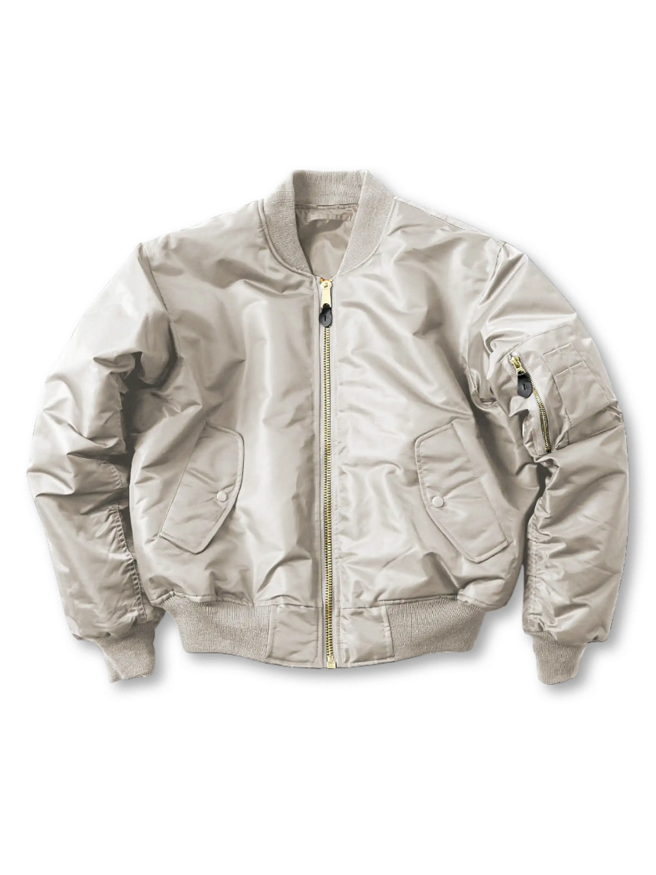アメリカ空軍パイロットのために設計されたMA-1をベースに、現代的な素材とシルエットで再構築。66ナイロンツイル生地を使用し、撥水・防風性を確保。内側には鮮やかなレスキューオレンジを採用し、リバーシブル仕様を踏襲。袖にはユーティリティーポケット、ウエストにはスナップ付きフラップポケットを配置。裾と袖口のリブが冷気を遮断し、1800g相当の中綿が-10°C〜10°Cの気候にも対応。全体のシルエットはオリジナル同様、袖周りにゆとりを持たせたショート丈のボリュームフォルムで、現代のオーバーサイズスタイルにもマッチする。生地の厚さ:厚手フィット:ルーズフィット伸縮性:なし(リブ部のみあり)丈:短丈